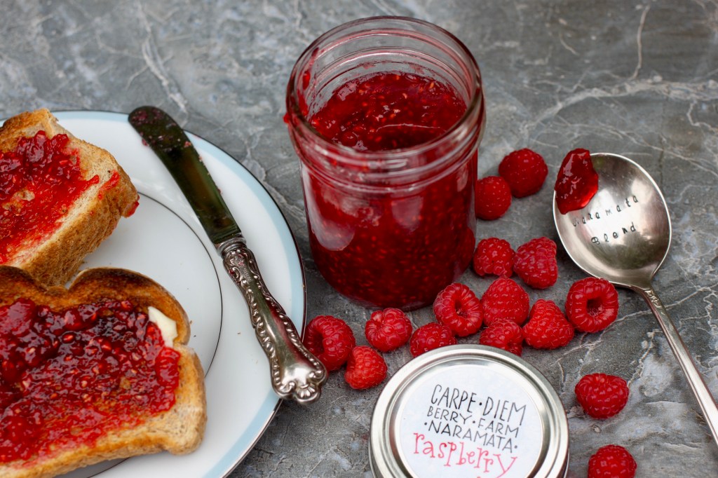 Fruit, never mind the raspberries you think you are buying, is often not even the first ingredient in store-bought jam. Look out for ingredients such fruit syrup (concentrated juices from less expensive fruit such as apples, pears or pineapples), high fructose corn syrup which is cheaper than pure cane sugar (now this is an ingredient you should avoid at all costs), natural flavours (which can be a whole lot of things that have nothing to do with raspberries) and citric acid which is made in a lab to substitute for lemon juice.