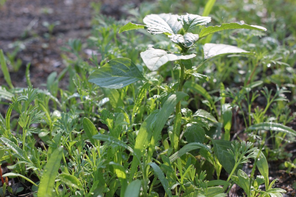We planted a cover crop of annual rye grass in the fall and kept it mowed to prevent it from going to seed.