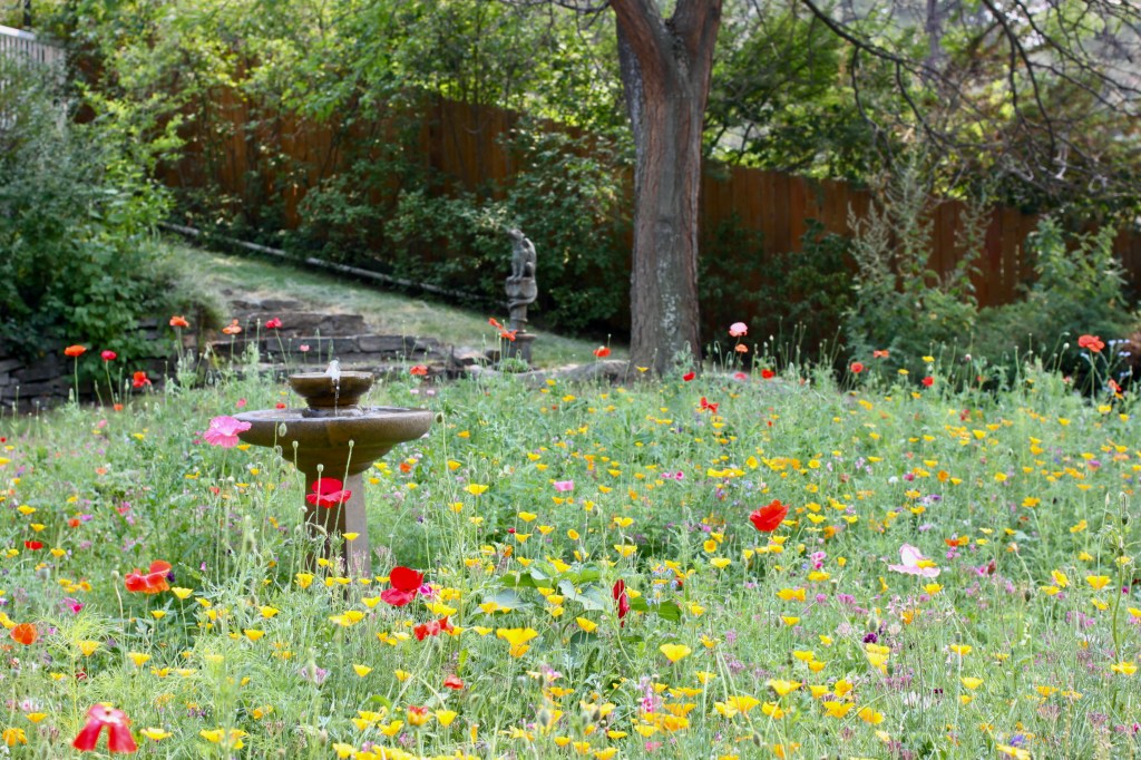 It took only 10 weeks from planting to transform a bare patch of poor soil to a magical meadow alive with bees and birds in a Naramata, British Columbia, Canada garden.