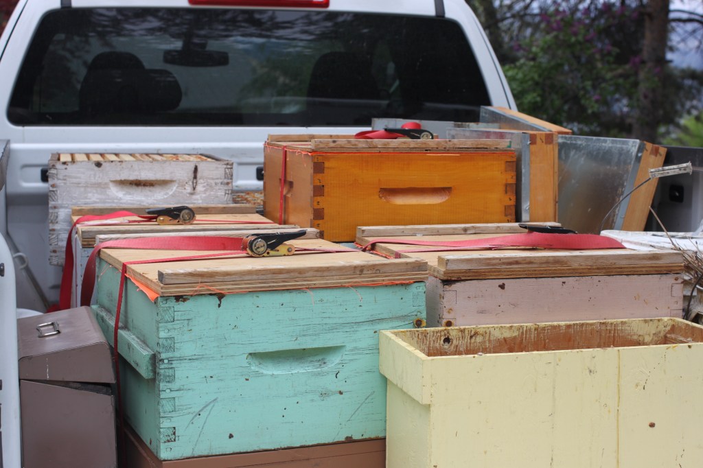 Tim takes the supers filled with honey to his honey house on Naramata Road (near Hillside Winery) at the end of the summer.