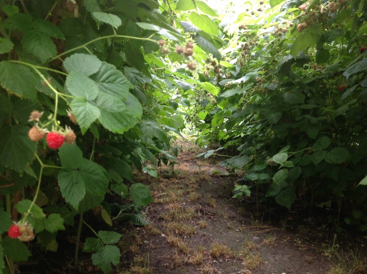 Just outside the garden walls is our raspberry farm just days away from harvest.