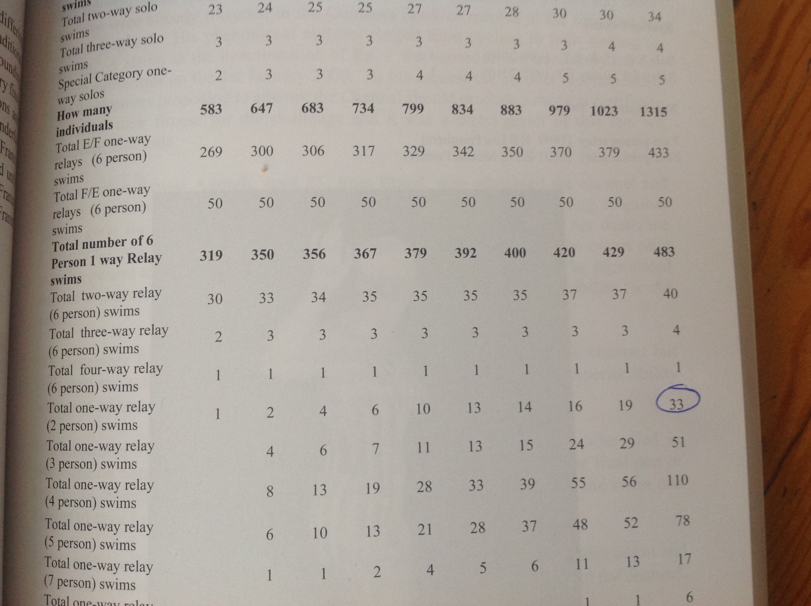 In my research at the time Channel teams of two are pretty rare… at the time only 33 duos had made the England to France crossing and of that number only a handful had been attempted in June. I guess the thinking is you might as well do a solo if you are going to do that much swimming. The other factor, a pretty big one, is the after drop. Swimmers alternate one hour in the drink, one on the boat. An hour is not long to warm up again after 12C.