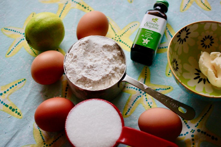 Genoise Sponge Cake 1 cup flour, sifted ⅔ cup sugar 4 eggs 1 teaspoon vanilla extract 2 tablespoons butter, melted Zest of one lime