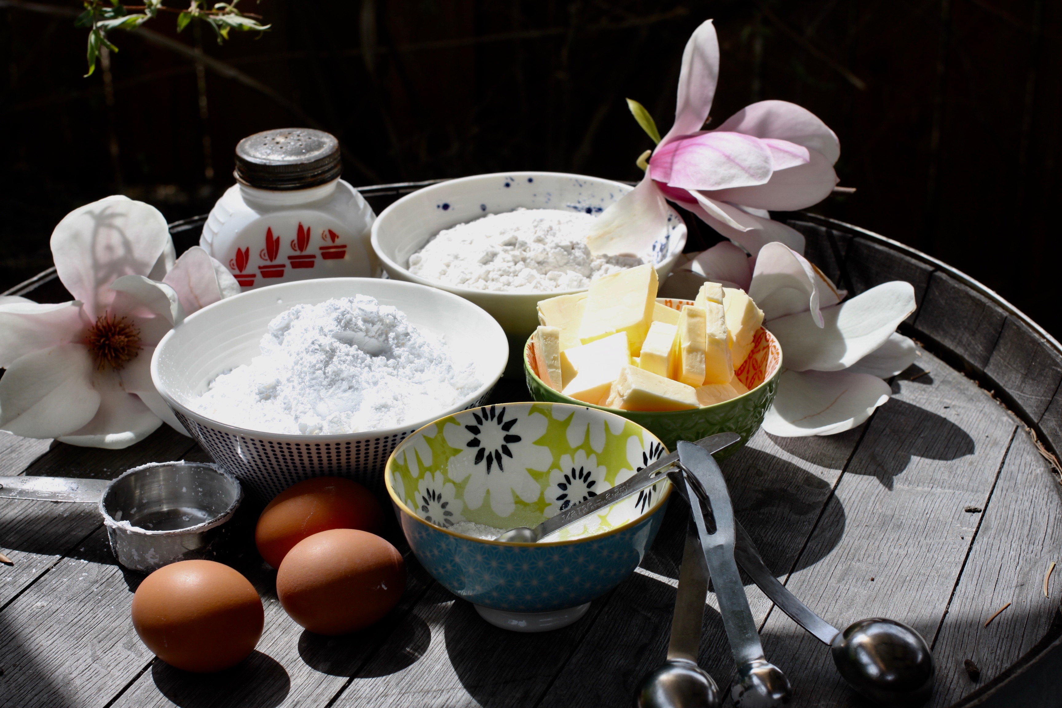 Sift the flour, baking powder and salt together in a bowl and set aside. Place the butter and confectioners’ sugar in the bowl of an electric mixer with the paddle attachment and beat for about 3 minutes until light and fluffy. Add the eggs, one at a time, beating well after each addition. Scrape the bowl when necessary. Add the vanilla extract followed by the dry ingredients and beat just until combined.